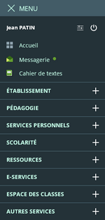 L'accès aux services s'effectue désormais via un nouveau menu vertical :